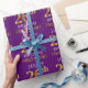 Este design de papel de embrulho apresenta uma mensagem como "FELIZ 26º ANIVERSÁRIO", com o "26º" a ter uma aparência falsa/imitação de ouro. Ele também apresenta um nome personalizável e um fundo de cor roxa. Talvez possa ser utilizada quando se dá presentes para o vigésimo sexto aniversário de alguém. [~Z0000134]