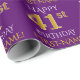 Este design de papel de embrulho apresenta uma mensagem como "FELIZ 41rua ANIVERSÁRIO", com a "41ruas" com aparência falsa/imitação de ouro. Ele também apresenta um nome personalizado, e um fundo de cor roxa. Talvez possa ser utilizado quando se trata de dar presentes para o quarenta primeiro aniversário de alguém. [~Z0000134]