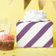 O papel de embrulho para comemoração ao desenhar com impressões de Stripes roxa e branca com apresentação de cor verde.
