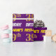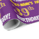 Este design de papel de empacotamento apresenta uma mensagem como "PRIMEIRO NOME É 39º ANIVERSÁRIO!", com o "39º" a ter uma aparência de cor falsa/imitação em forma de ouro, e com o nome e "ANIVERSÁRIO" numa fonte divertida e ousada. O nome pode ser personalizado, e o fundo é roxo colorido. Um papel de embrulho como este poderia talvez ser usado no embrulho de presentes de aniversário que são dados a alguém em comemoração de seus trinta e nove anos. [~Z0000206]