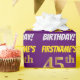 Este design de papel de empacotamento apresenta uma mensagem como "PRIMEIRO NOME DO 45º ANIVERSÁRIO!", com o "45º" a ter uma aparência de cor falsa/imitada em forma de ouro, e com o nome e o "ANIVERSÁRIO" numa fonte divertida e ousada. O nome é personalizável e o fundo é roxo colorido. Um papel de embrulho como este poderia talvez ser usado no embrulho de presentes de aniversário que são dados a alguém em comemoração de seus quarenta e cinco anos. [~Z0000206]