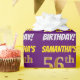 Este design de papel de embrulho apresenta uma mensagem como "SAMANTHA'S 56th BIRTHDAY!", com o "56º" a ter uma aparência falsa/imitada de cor dourada, e com o nome e "BIRTHDAY" numa fonte divertida e ousada. O nome pode ser personalizado e o fundo é roxo colorido. Um papel de embrulho como este poderia talvez ser usado para embrulhar presentes de aniversário que são dados a alguém em comemoração de seus cinquenta e seis anos de aniversário. [~Z0000206]