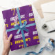 Este design de papel de empacotamento apresenta uma mensagem como "PRIMEIRO-ANIVERSÁRIO!", com o "7" a ter uma aparência falsa/imitada de cor dourada, e com o nome e "ANIVERSÁRIO" numa letra divertida e ousada. O nome é personalizável e o fundo é roxo colorido. Um papel de embrulho como este poderia talvez ser usado no embrulho de presentes de aniversário que são dados a alguém em comemoração do seu sétimo aniversário. [~Z0000206]