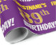 Este design de papel de embrulho apresenta uma mensagem como "FIRSTNAME'S 89th BIRTHDAY!", com o "89º" a ter uma aparência falsa/imitada de cor dourada, e com o nome e "BIRTHDAY" numa fonte divertida e ousada. O nome é personalizável e o fundo é roxo colorido. Um papel de embrulho como este poderia talvez ser usado no embrulho de presentes de aniversário que são dados a alguém em comemoração do seu oitenta e nono aniversário. [~Z0000206]