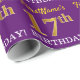 Este design de papel de embrulho apresenta uma mensagem como "FirstName’s 17th BIRTHDAY!", com o "17º" a ter uma aparência de cor falsa/imitada em ouro. O nome pode ser personalizado, e o fundo é roxo colorido. Talvez possa ser utilizado quando se trata de embrulhar presentes para o 17º aniversário de alguém. [~Z0000182]