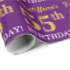 Este design de papel de embrulho apresenta uma mensagem como "First-Name’s 55th BIRTHDAY!", com o "55th" a ter uma aparência falsa/de cor dourada. O nome pode ser personalizado e o fundo é roxo colorido. Talvez possa ser utilizado quando se dá presentes para o quinquagésimo quinto aniversário de alguém. [~Z0000182]