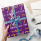 Este design de papel de embrulho apresenta uma mensagem como "FirstName’s 72nd BIRTHDAY!", com o "72º" a ter uma aparência falsa/de cor dourada. O nome pode ser personalizado, e o fundo é roxo colorido. Talvez possa ser utilizada quando se dá presentes para o setenta e segundo aniversário de alguém. [~Z0000182]