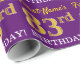 Este design de papel de embrulho apresenta uma mensagem como "First-Name’s 83rd BIRTHDAY!", com o "83º" a ter uma aparência de cor falsa/imitada em ouro. O nome pode ser personalizado, e o fundo é roxo colorido. Talvez possa ser utilizado quando se dá presentes para o oitenta e terceiro aniversário de alguém. [~Z0000182]