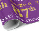 Este design de papel de embrulho apresenta uma mensagem como "FirstName’s 87th BIRTHDAY!", com o "87º" a ter uma aparência falsa/de cor dourada. O nome pode ser personalizado e o fundo é roxo colorido. Talvez possa ser utilizado quando se dá presentes para o oitenta e sétimo aniversário de alguém. [~Z0000182]