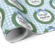 Este clássico papel de embrulho de Natal apresenta uma coroa aquosa com arco azul e diz "Feliz Natal" e personalizado com o seu nome de família.