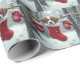 Uma Rua. O cachorrinho Bernard espia de uma meia de Natal vermelha pendurada numa linha entre duas luvas correspondentes