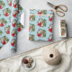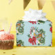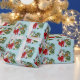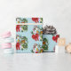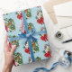 Um dragão chinês brincando com as luzes de Natal em uma coroa de Natal com bolas de Natal, arco vermelho, ornamento, luzes de Natal, cada árvore verde em um pano de fundo azul