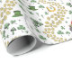 Esta Rua caprichosa desenhada à mão. O papel de embrulho do Dia de Patrick apresenta várias imagens irlandesas icônicas, incluindo trevos verdes, moedas de ouro de shamrock, um pote de ouro no final de um arco-íris, um chapéu de duende, cogumelos verdes, corações verdes e a bênção irlandesa, "Desejando-vos sorte e alegria!". Tudo em um padrão curvado divertido.