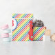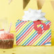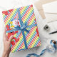 Este papel de embrulho personalizado bonito vai adicionar uma cor divertida aos presentes de festa de aniversário do seu filho. O adorável design striped do arco-íris mostra Elmo, o feliz monstro vermelho da rua Sesame. O bonitinho parece pronto para festejar enquanto dança com um sorriso gigante através de seu rosto peludo. © 2021 Sesame Workshop. www.sesamestreet.org
