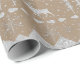 Um papel de embalagem kraft colorido que apresenta um padrão de suéter nórdico de animais prateados de inverno como a raposa-árctica, a rena-stag e uma família de ursos polares.