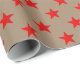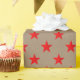 Um papel de embrulho de kraft rústico para Natal com estrelas vermelhas brilhantes em papel a cores kraft.