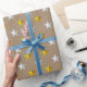 Papel De Presente Rustic Kraft Dourado Silver Stars Feriado