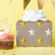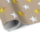Um papel festivo de embrulho para a época natalícia, com estrelas de ouro e prata em fundo de papel kraft. Excelente para qualquer ocasião e faz um embrulho de presente impressionante.