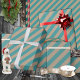 Um papel de embrulho de férias cor rústico, kraft, com faixas verdes e poeirentas na diagonal.