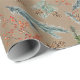 Um papel de embalagem de inverno vivo que apresenta um padrão de pinheiro pintado a aquarelas e ramos de spruce azuis, cones de pínus e bagas vermelhas de ilex em um papel marrom a cores Kraft.
