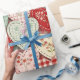 Warm rustic patchwork pattern wrapping paper featuring stitched heart motifs, plaid checks, and country-style fabric blocks in red, blue, green, and beige tones. A cozy farmhouse-inspired design ideal for country decor lovers, quilting fans, and rustic home enthusiasts. Perfect as a heartfelt gift for couples, moms, or cottage-style fans