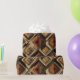 Warm geometric stripe pattern wrapping paper featuring tribal-inspired diamonds, zigzags, and textured vertical bands in earthy brown, terracotta, tan, beige, and charcoal tones. A cozy boho design ideal for southwestern décor lovers, rustic style fans, and anyone drawn to earthy, handcrafted aesthetics.