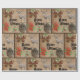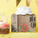 Vintage Mensagem de Natal Feliz, Vintage Mth com "Saudações de Época" impressa em suas asas, milho de pínus, sagrado e poinsettia. Veado moderno com luzes de Natal nos chifres, tirado por ©Tina Hesskew de Fisheries Hunting Life. Fundo Rustic Brown Grunge.