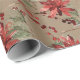 Papel De Presente Rústico Kraft Chickadees Red Berries & Poinsettias