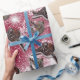 saddle horse shoe pine cones, snow winter equestrian wrapping paper, red