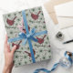 Papel De Presente Sage Green Winter Red Cardinal Patterno