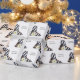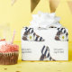 Par de bombas listradas brancas e pretas com margarida branca a branco, com uma citação divertida a branco