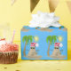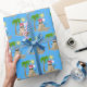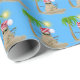 Sanduíche de neve bonito na praia com óculos escuros e boné de estocagem segurando uma corda de luz de Natal debaixo da palmeira de Natal