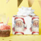 Papel de embrulho de Natal bonito com o velho Papai Noel vestindo seu boné vermelho e esportando sua barba branca de cheio. Um papel de embrulho muito bonito para o seu presente.