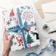 Papel De Presente Santa Claus Reindeer Pine Trees Mittens