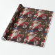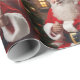 Papel de embrulho com uma imagem de Santa Cláusula, que sorri e acenando, sentado em frente a uma Árvore de Natal. Esta design foi criada por Debbie Quick, de Imagens Criativas Debs: www.debscreativeimages.com