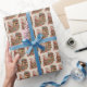 Bring the joy of Santa’s workshop to your gifts with this detailed pattern of Santa crafting toys surrounded by colorful presents.