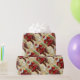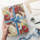 O santo Nicholas carregando um carro de madeira, tambor, barco, coroa e um cheio de presentes. Imagem retrorativa formada por montanhas ocas e brilhantes.