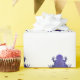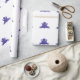 O papel do roxo e o branco de envolvimento com um sapo roxo projeta no fundo branco. Colorido e divertimento.