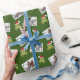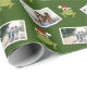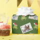 Este papel de embrulho de Natal ilustrado apresenta duas das suas fotos favoritas e sapos divertidos em Chapéus de Papai Noel em um fundo verde. Adicione diversão personalizada a este feriado com este empacotamento de presentes com foto e padrão animal.