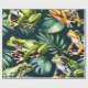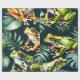 Sapos verdes e laranja em folhas frescas, arte aquática.