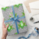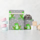 Sapos verdes e bonitas sobre cinzas e fundo branco de bolinhas.