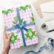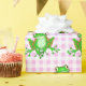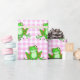 Sapos verdes bonitos em fundo de gingham rosa e branco.