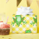 Sapos verdes bonitos sobre fundo de gingham amarelo e branco.