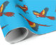 Possui araras-escarlate, essas aves exóticas são perfeitas para pessoas que gostam de aves tropicais e animais. Estas araras-escarlate da floresta tropical são um tipo de papagaio. Com um fundo azul-céu.