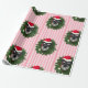 Christmas Wrapping Paper featuring a miniature schnauzer with a wreath around his neck.