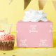 Uma cor de fundo cor-de-rosa esbranquiçada, texto branco. Personalize e adicione um nome e uma idade. Script de estilo manuscrito.