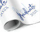 Modelo de camada sofisticada de festa de formatura com realces em uma paleta azul branca e azul marinho escura. O design apresenta uma tipografia com letra "formando" de pincel azul esticada à mão, num fundo branco, juntamente com o nome do formando e o ano de graduação. Excelente maneira de honrar sua escola primária, segundo grau ou formando universitário! #Classof2019 #bind