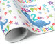 Um presente especial de segundo aniversário! Este brilhante e divertido papel de embrulho de aniversário apresenta um dinossauro azul, algumas estrelas bonito e texto colorido. Um design bonito para alguém que terá dois anos. Adicione o nome da criança do segundo aniversário ao pacote de presentes para personalizá-lo para o garoto ou garota especial.
