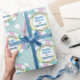 Este papel de embrulho apresenta um tema de Páscoa bonito e colorido em um fundo colorido de cor branca com bolinhas brancas. Um padrão de espiral colorido pastel borda o adesivo em tons de rosa, verde, azul e roxo. O título "Selo Oficial de Coelhinhos da Páscoa" é impresso num padrão circular sobre uma faixa amarela, para se assemelhar a um selo oficial. O rótulo de Entrega Especial é impresso no centro, seguido de um nome de exemplo que você pode personalizar para incluir seu próprio nome personalizado ou texto.