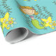 Uma sereia sorridente e uma natação amarela de estrelas-do-mar entre as algas, uma design que é fofa e colorida para meninas que amam o oceano e as sereias! T-shirts de sereia, fatos-chave, bíblias, cobertores, panos de arroto, cartões, autocolantes, bolsas, canecas, correntes-chave, travesseiros, relógios de parede e muitas outras artes de sereia!